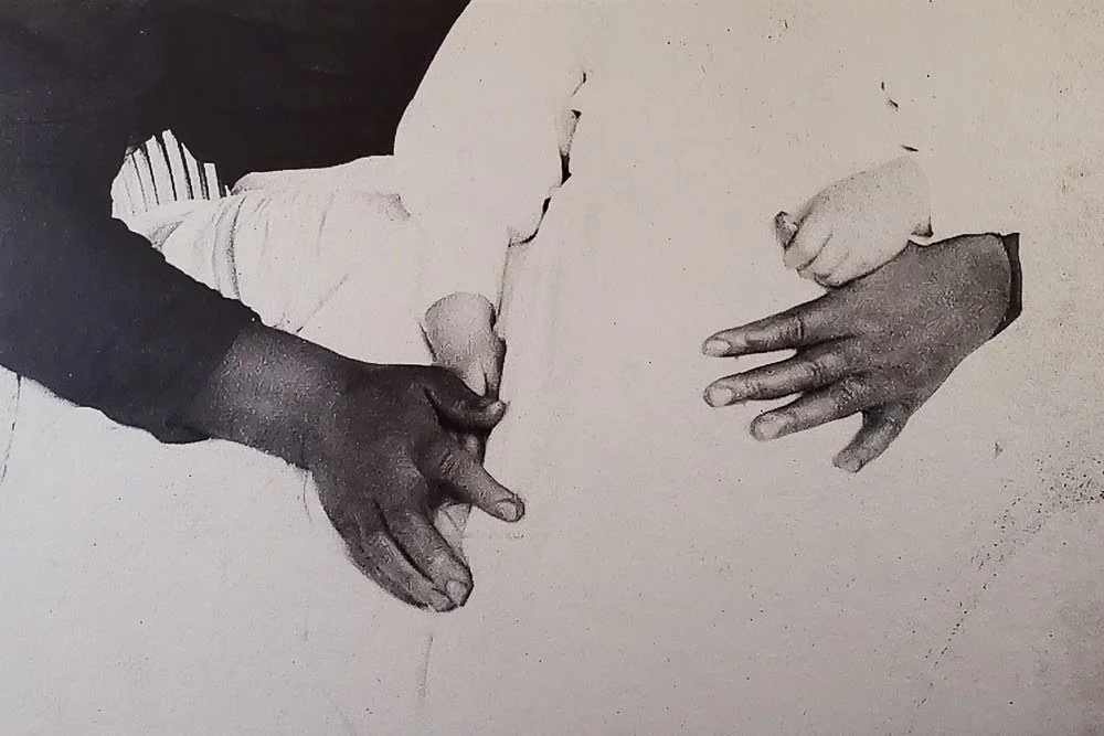 These works are from a series comprised of images collected from various digital archives. The source photographs depict unidentified, and likely enslaved women with their young charges. Each of the images in this body of work have been intentionally cropped or collaged to draw attention to the issues of agency and representation or the complex relationships of care and nurturing between caretaker and charge. The images are printed on a metallic luster paper that has the color and texture of granite.